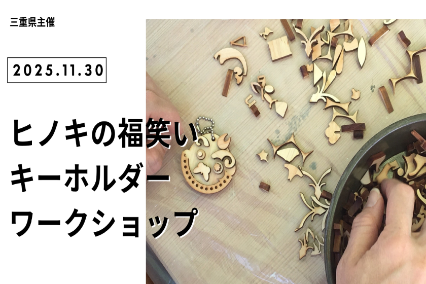 また、11月30日(日)のイベントでは、来場者の方に「通勤」「住まい」「子育て」の三つそろった三重県のノベルティをお渡しするとともに、『ヒノキの福笑いキーホルダーづくり』ワークショップ(参加無料)を行います。
