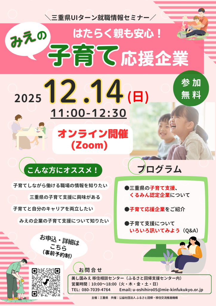 三重県UIターン就職情報セミナー 《みえの子育て応援企業》