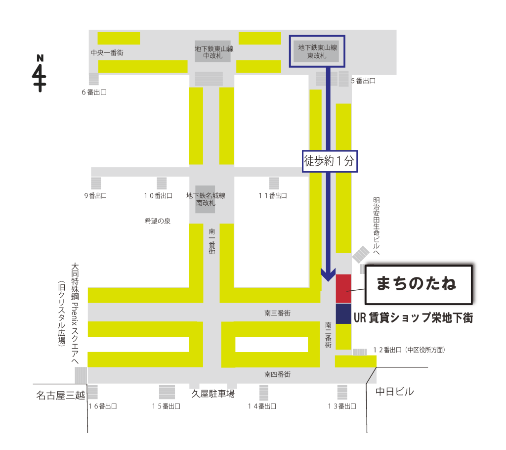 名古屋市営地下鉄東山線・名城線「栄」駅 東改札口より南に徒歩約1分