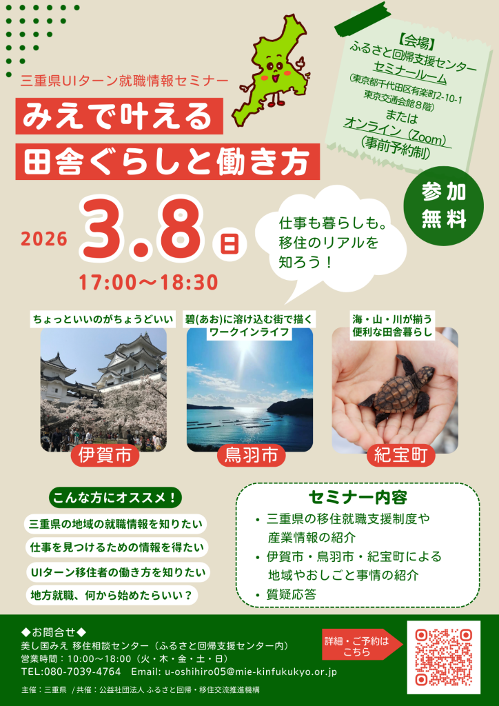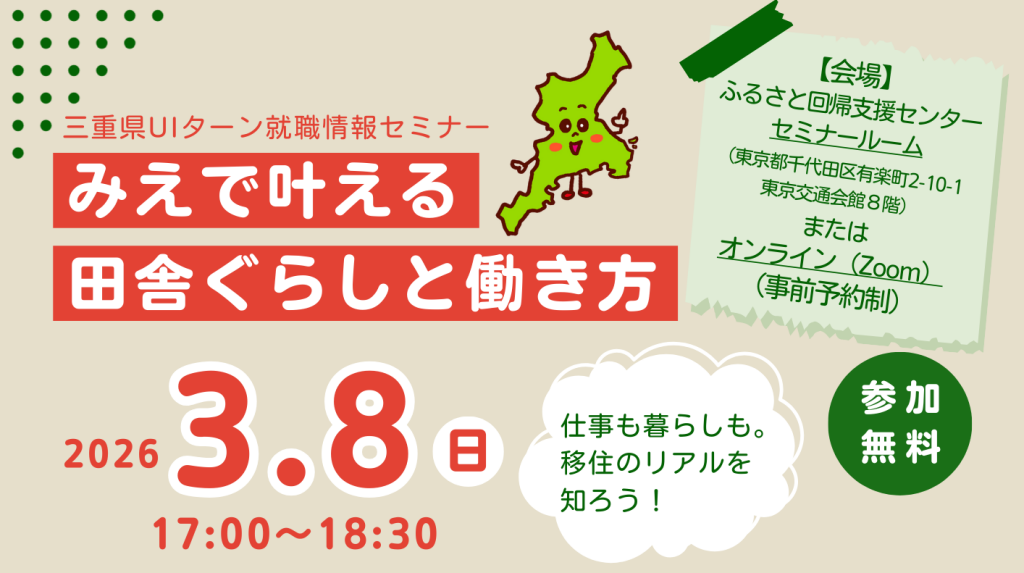 【東京|3/8(日)】みえで叶える田舎ぐらしと働き方 就職情報セミナー