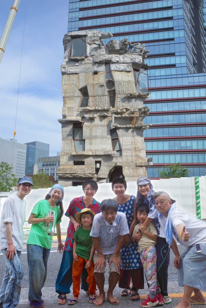 蟻鱒鳶ルは、岡さんが東京の三田で、重機を使わずに20年間手作業で作っている建造物です。地域開発のため存続の危機にありましたが、昨年、曳屋になり10メートル移動して、感動的な風景を見せてくれました。建築家やアーティストをはじめ多くの人が吸い込まれるように集い、来るもの拒まず受け入れる岡さん。まるで生き物のような巨大コンクリートの蟻鱒鳶ルは、東京のど真ん中で生き方に迷う人のランドマークとなっています。
