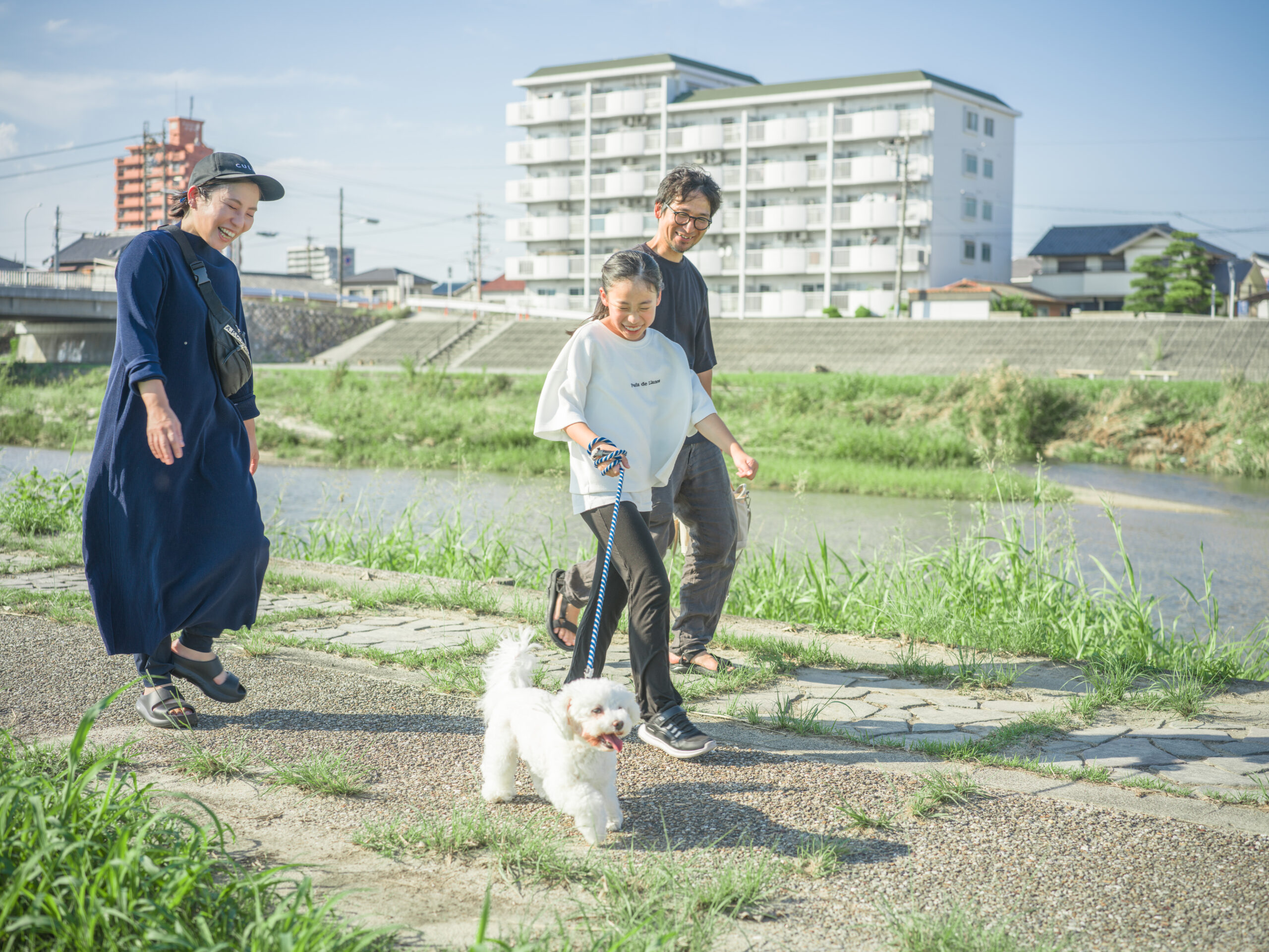 小学生のお子さんがおり、広い公園やきれいな川、温泉といった家族で楽しめる子育てに優しい環境にすぐアクセスできることが三重のお気に入りポイント。最近、元保護犬のわんちゃんも家族に加わり、充実した暮らしを送っています。
