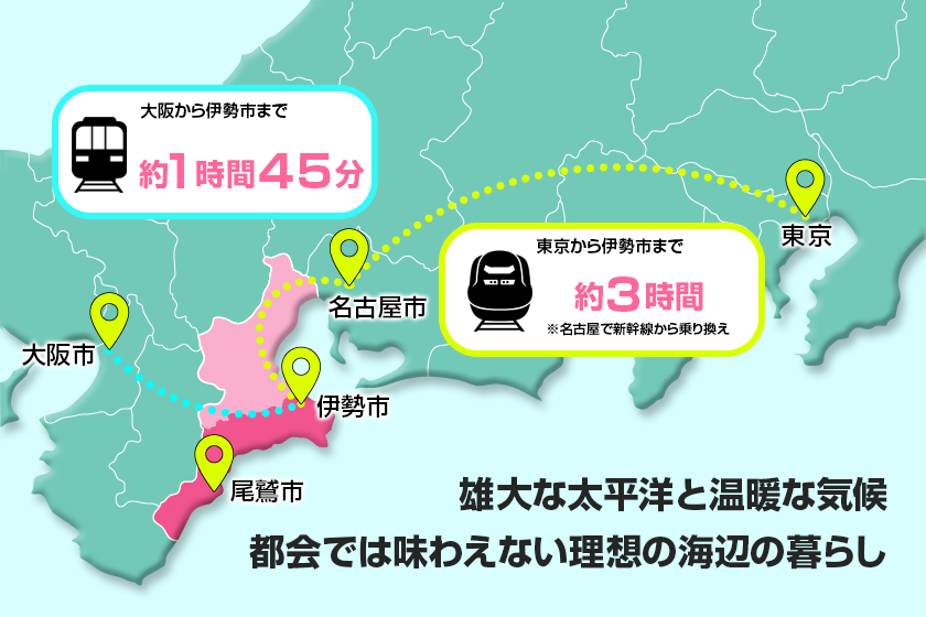 東京からだと新幹線で名古屋まで来て、そこから近鉄やJRといった鉄道で津市や伊勢市まで来て、さらに鉄道や車で南下するという、正直アクセスが良いとは言えない立地です。