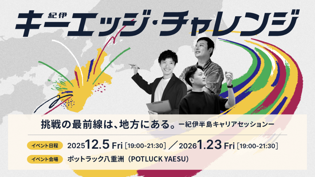 三重県・奈良県・和歌山県の三県で構成する紀伊半島移住プロモーション事業実行委員会では、紀伊半島でのキャリアや起業、移住のリアルを発信するプロジェクト『キーエッジ・チャレンジ』を始動します。 紀伊半島でユニークな挑戦を続け […]