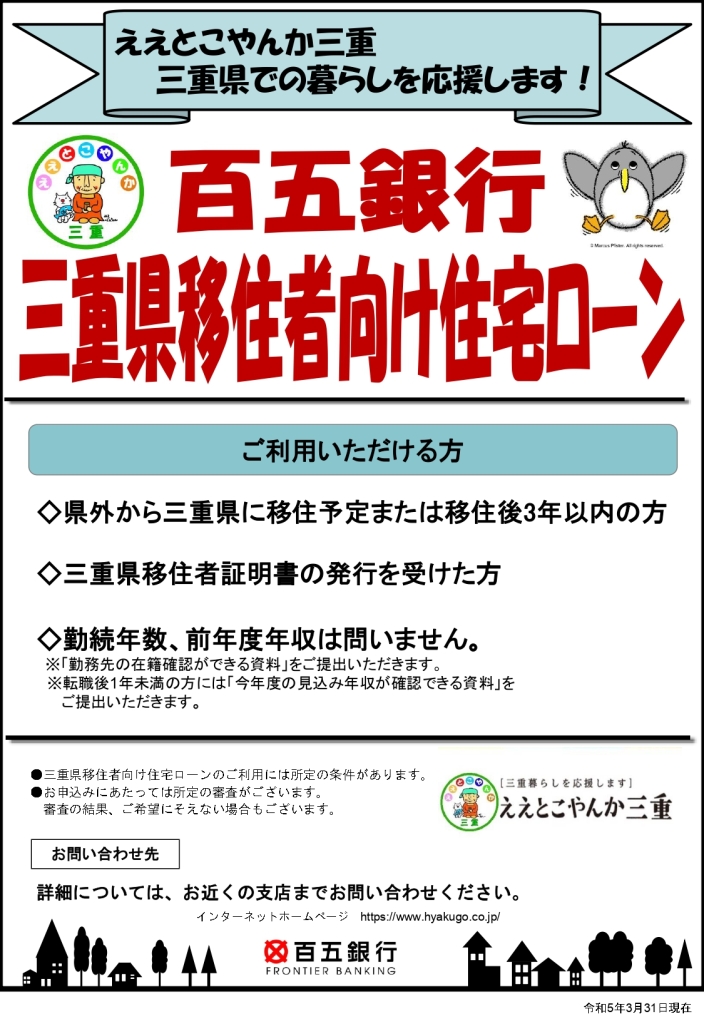 三重県移住者向け住宅ローンのご案内(百五銀行)