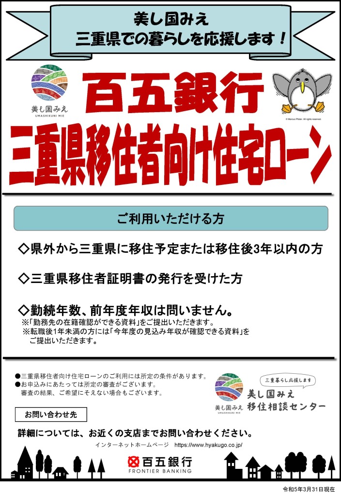 三重県移住者向け住宅ローンのご案内(百五銀行)